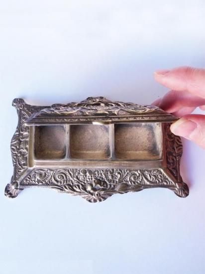 世界各国で意匠を凝らした切手が作られてきましたが、英国はとりわけその種類が多いような気がします。そしてその切手を入れるための専用の箱=「Stamp Box/スタンプボックス」を見かけることが多いのも、英国アンティークの特徴の一つと言えるかもしれません。