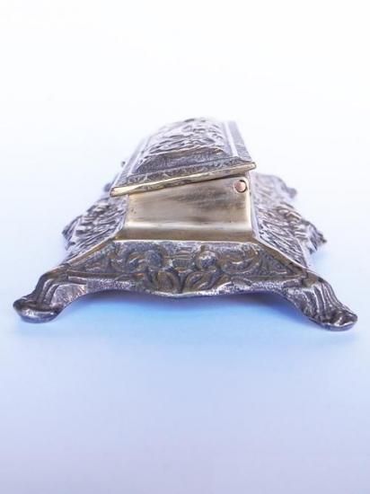 しっかりとした作りは高級感があり、ずっしりとした重さで安定感も抜群。蓋は少し傾いており、使う側からよりきれいに見えるようなフォルムです。開ければ小さな3つの小部屋に分かれており、納める切手のサイズにより仕分けることができるようになっています。手前部分の立ち上がりが斜面になっており、切手を取り出しやすく工夫されているのもスタンプボックスならではの特性と言えるでしょう。